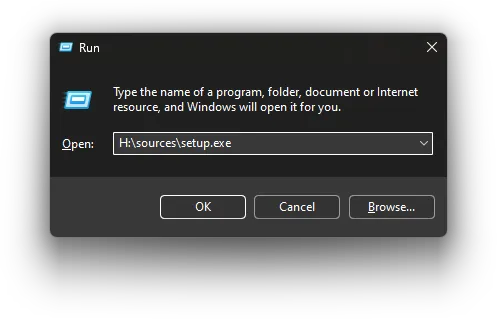:\sources\setup.exeafter it. Example:H:\sources\setup.exe -